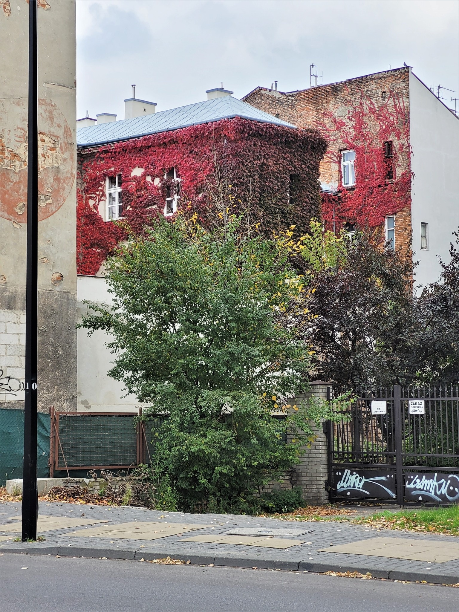 Ten zarośnięty winobluszczem budynek pokazuje, że krajobraz to nie są obiekty, lecz relacje między nimi i nami. Budynek jest jeden, ale tworzy 4 zupełnie różne sytuacje krajobrazowe: widok przez bramę, z podwórka, z sąsiedniej ulicy i z sąsiedniego podwórka. Ponadto, warto zwrócić uwagę na walory naturalnej faktury listowia. Po pierwsze, pojawia się ono i znika a także zmienia kolor wraz z porami roku. Po drugie, tworzy powierzchnię, która ukazuje nowe detale, kiedy się do niej zbliżamy. Z daleka sprawia wrażenia puszystej i miękkiej, ale w miarę zbliżania się odkrywamy w niej nowej cechy aż do widoku pojedyncznego liścia, który okazuje błyszczący i dość twardy.