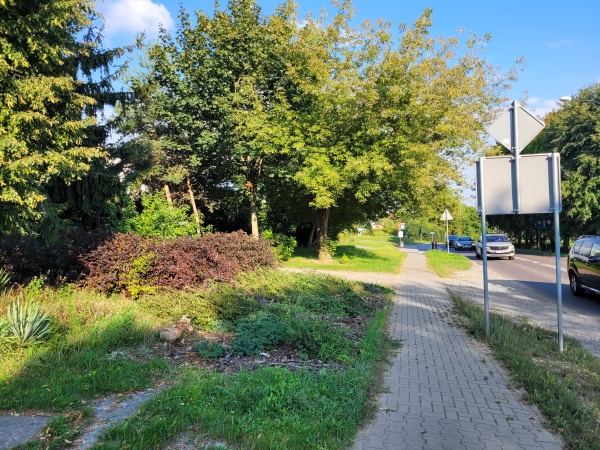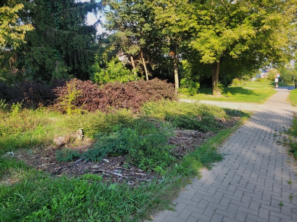 - przy ul. Bydgoskiej – na trawniku pod ogrodzeniem posadzono zwarty masyw berberysów “Rose Glow” (243 szt.) naprzemiennie z irgą horyzontalną (249 szt.) oraz posadzono dwie wiśnie piłkowane “Amanogava”, w celu zabezpieczenia roślin przed najeżdżaniem przez samochody wbito drewniane paliki od strony drogi na całej długości rabaty
